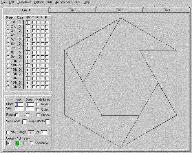 This is the Core Seed for a regular Hexagon, and you can now go to the File Menu and SAVE it under the PRZ file of your choice. (Note: this drawing was done entirely inside the Program with no pencil or paper necessary.)