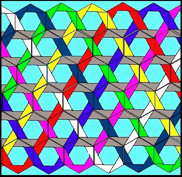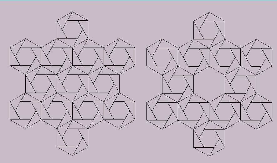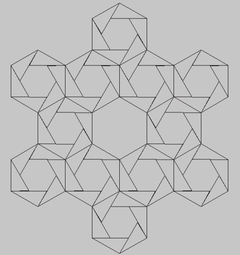 Now click the Tessellator Button in the menu. The Tessellator window should appear. Choose the size you want, and then press the Shift key and the left key of the mouse at the same time. You should see a copy of the Core Seed (Hexagon) appear on the screen. Here is where Steve’s Program becomes simply incredible, and illustrates the advantage of building things within the program! Just continue to copy the file again and again moving your next copy around to be juxtaposed to the prior copy, until you get something that looks like this:
